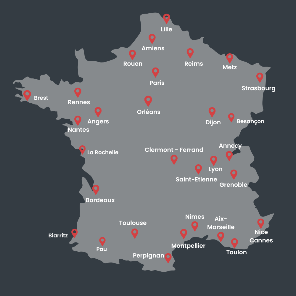 Nos salles peuvent accueillir jusquà 22 élèves par cours, ceci pour garantir une formation adaptée et complète pour chacun. Formations dispensées dans 28 villes en France.